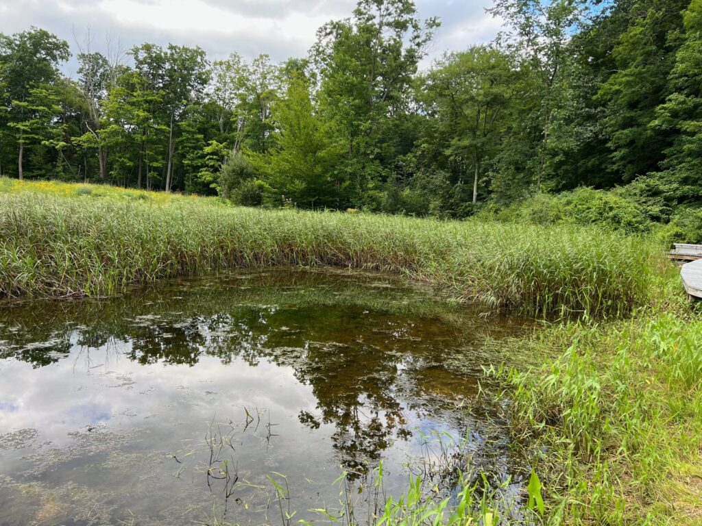 Over time, increasingly severe storms damaged the infrastructure that regulated water levels, disrupting the flow of water from the pond to the marsh. As a result, the marsh had begun to dry out and become overtaken by invasive vegetation.